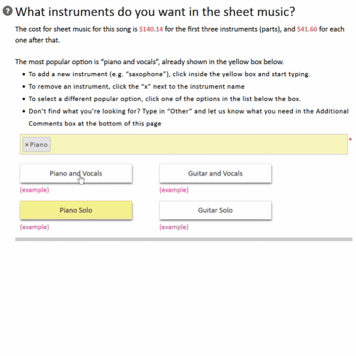 You should now find that the questions you are asked at checkout appear in a more logical order, and will only be asked when relevant. For instance, you will now only be asked if you would like “Score and Parts” when you have more than one instrument in your ensemble.
